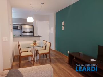 Apartamento com ar condicionado, armários embutidos, cozinha mobiliada, lavabo, dependências de empregado. No condomínio tem academia de ginástica, área verde, elevador, salão gourmet, salão de jogos, quadra poliesportiva, piscina