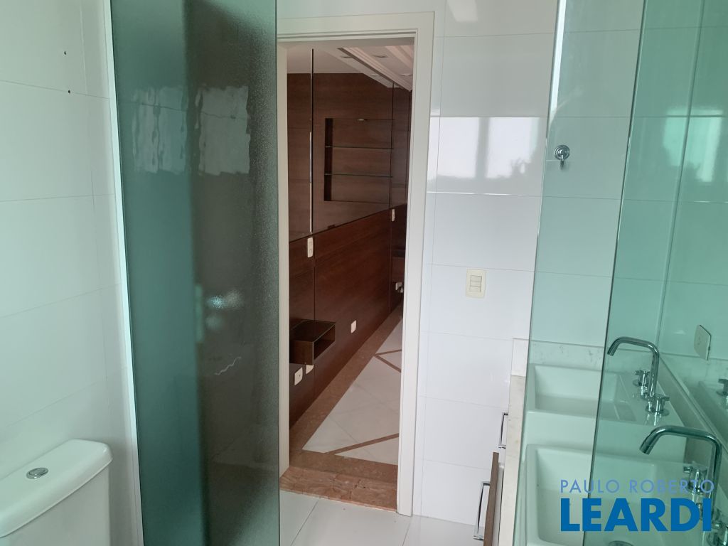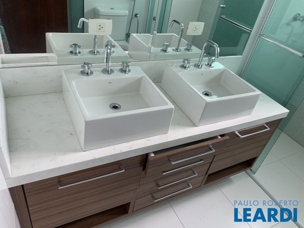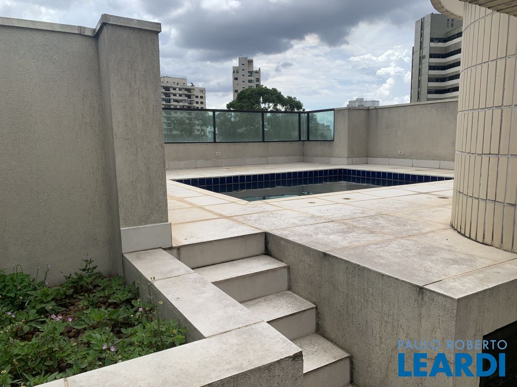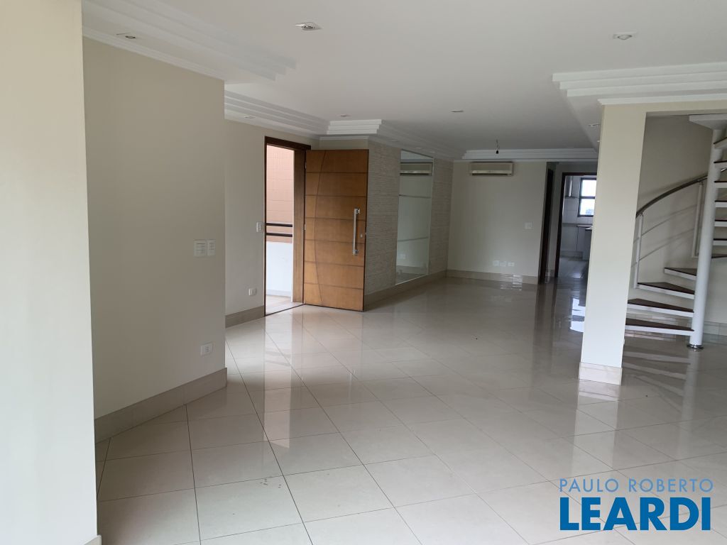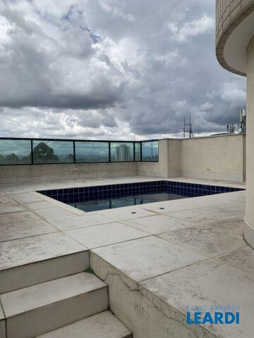 Ampla cobertura, em rua fechada, duplex, com 4 suítes, com churrasqueira sendo 1 suíte isolada no andar superior e área de lazer, piscina e churrasqueira. No andar inferior amplo living com lareira compondo sala de visitas/ estar e jantar integradas à grande varanda com vista livre do bairro. Espaçosa cozinha com despensa e lavanderia/ área de serviços com armários Kitchens e dependências de empregada e 3 suítes com armários Ornare, com 5 vagas e 330m2 e 4 suítes.